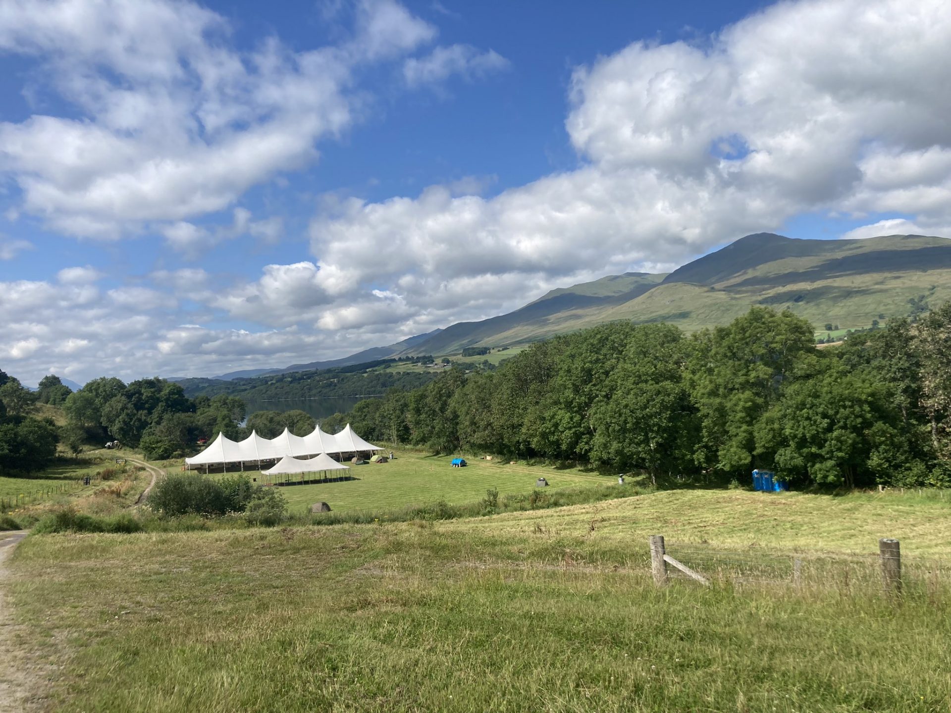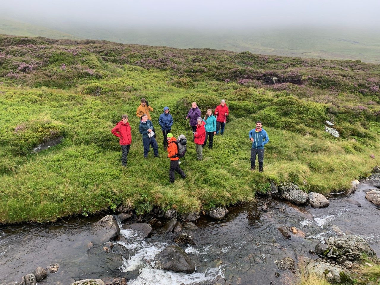 It’s about 15°C and raining but everyone is in high spirits and they’re pleased to report that there are no midges out at the moment!