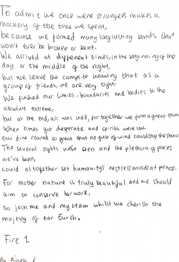 Poem to the right written by Young Explorer Rinesa.