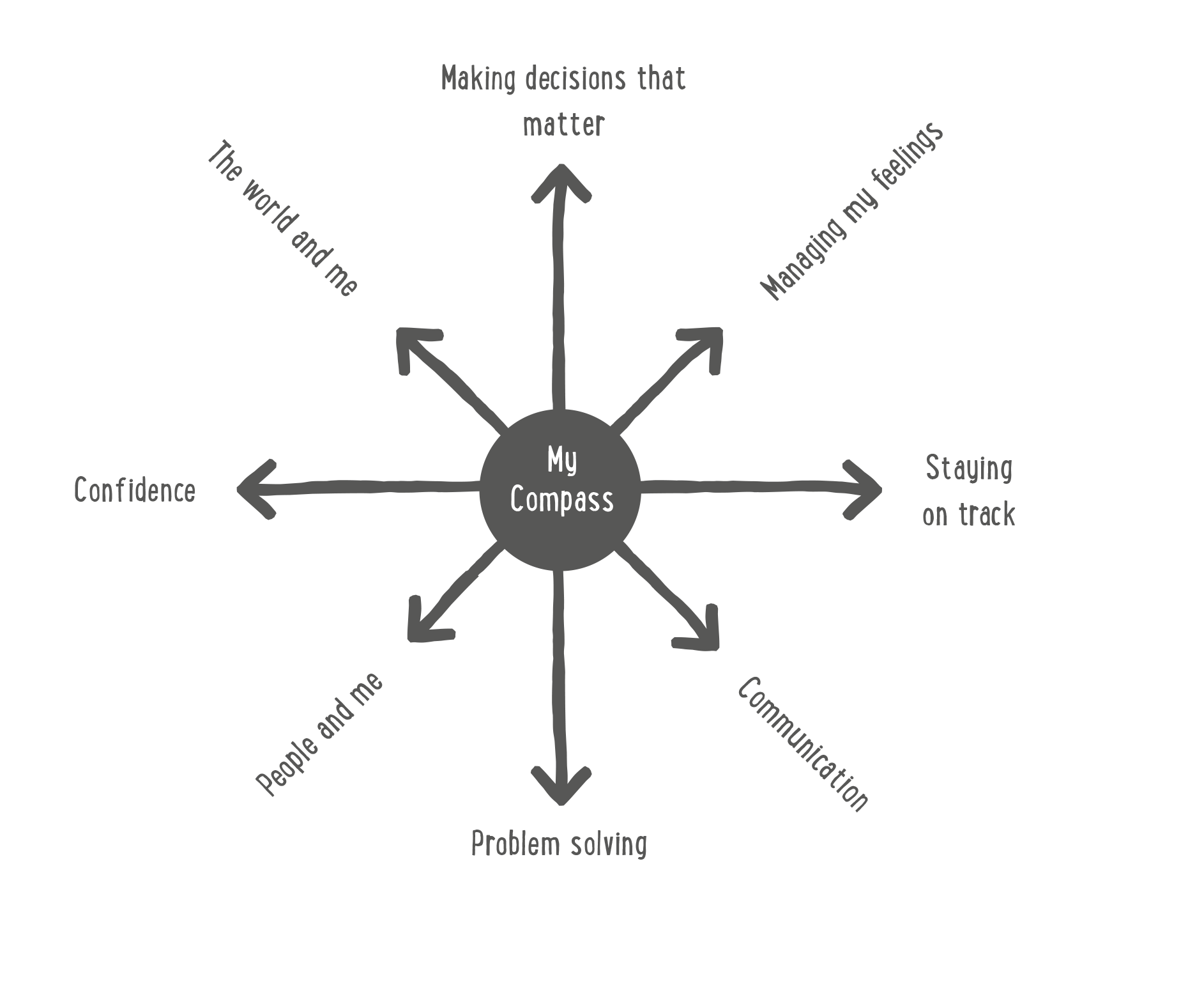 On expedition we focus on eight areas of skill or learning, as illustrated by My Compass.